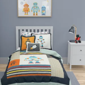 Robot Space 4Pc Crib + Toddler Quilt Set