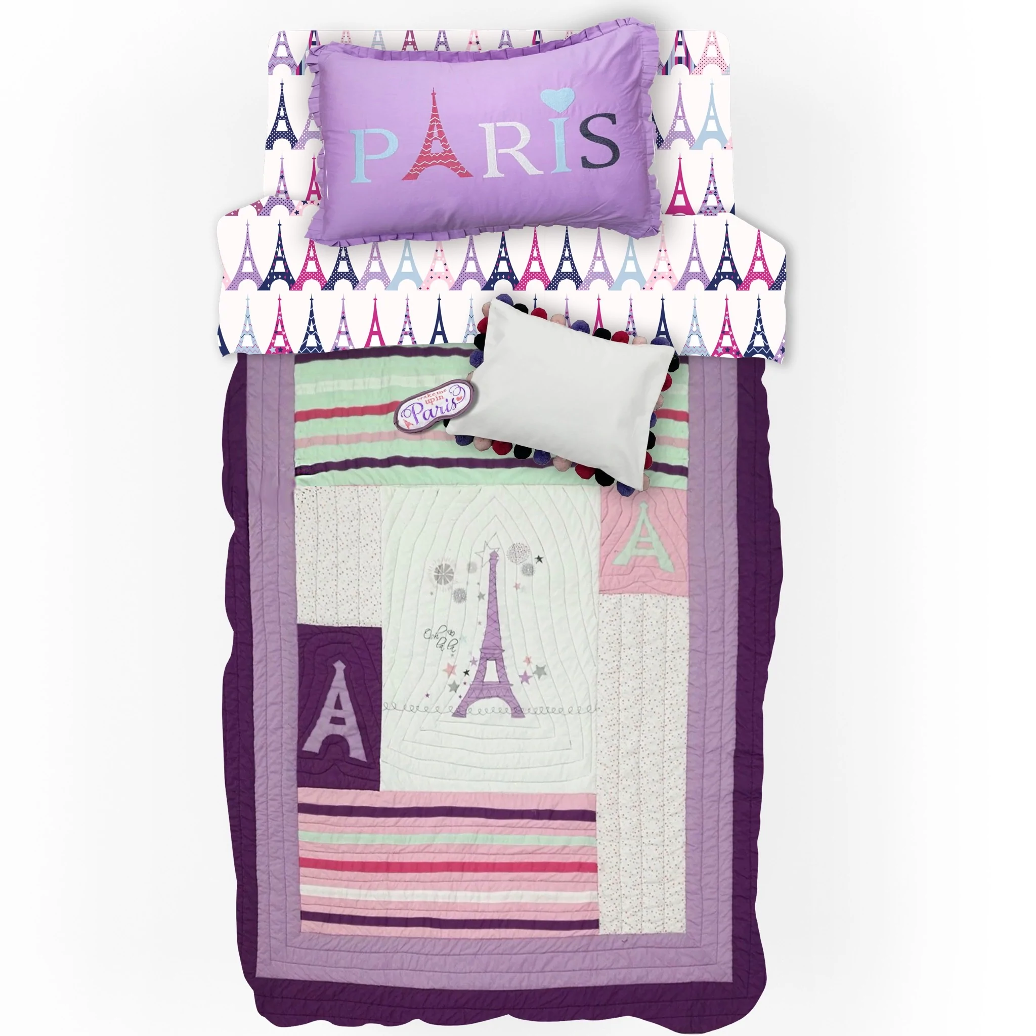 Paris, Je T’aime! Travel to the city of lights in your dreams with stylish Paris bedding for girls. Très Chic! Designed on Quality Cotton with printed and embellished details exclusively for Chez Bébé.
